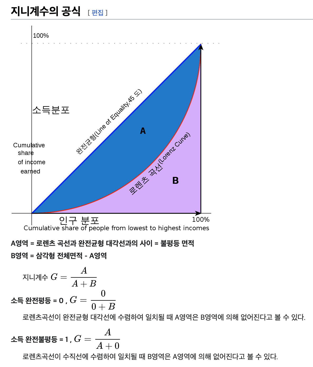 경제학 시간에 배웠던 지니계수와 로렌츠곡선을 복습할 시간이다.