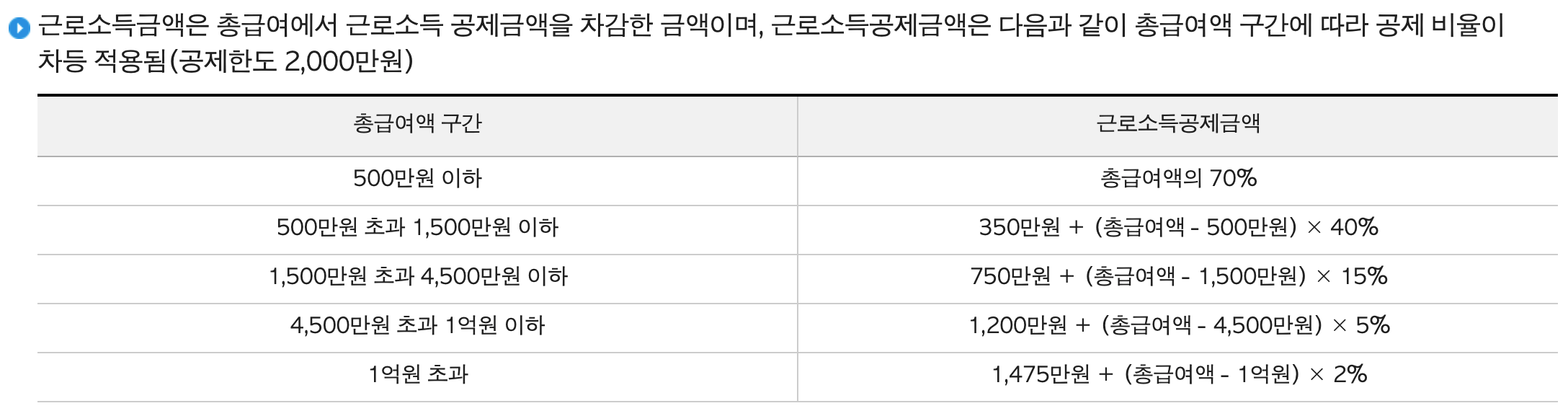 <!--근로소득공제는 미리 설정된 공식에 따라 자동계산됨-->