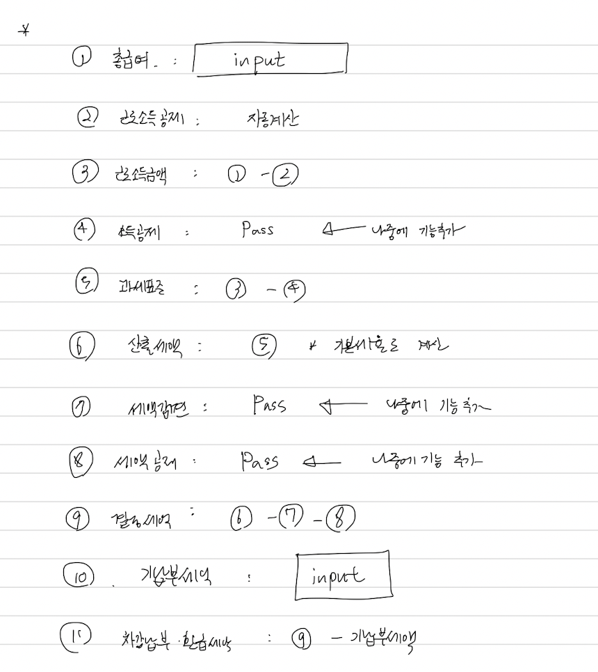 계산기를 만들어 본 경험을 토대로, 연말정산 계산기를 만들어 보려 한다. 아직 미완성이다.