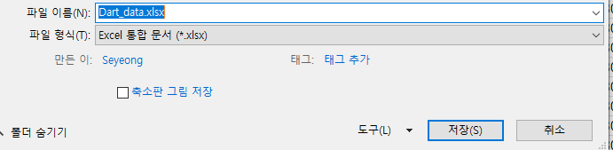 엑셀 - 파일 -다른이름으로 저장 - 파일형식 Excel 통합 문서