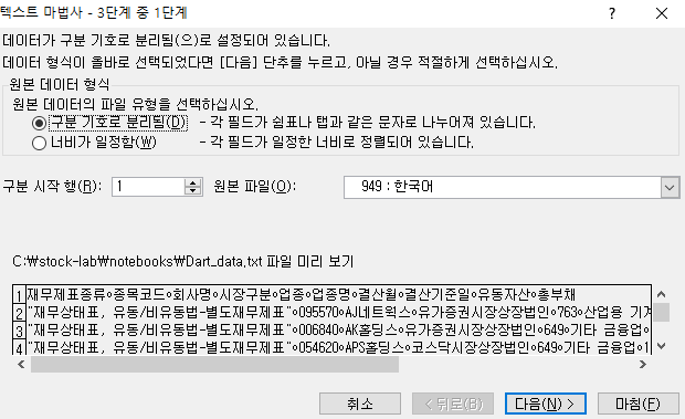 파일명은 dart_data.txt로 바꿔 주었다.