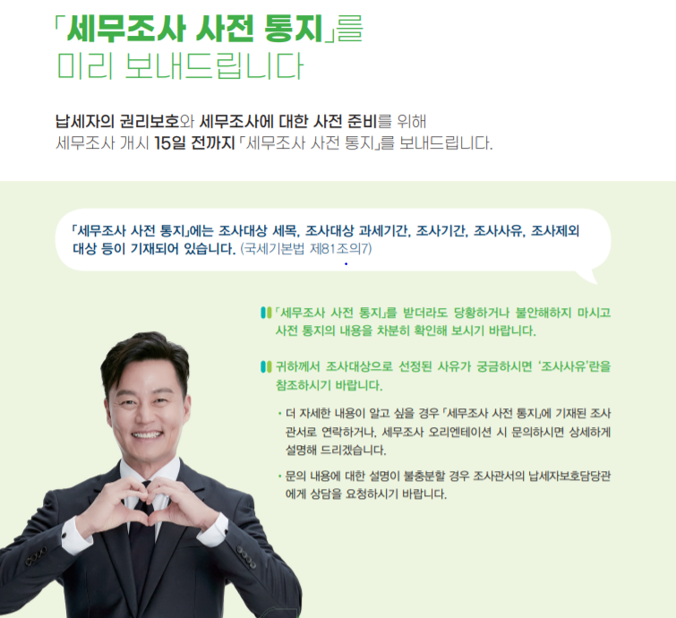 - 국세청 세무조사 가이드북에서 상세한 내용을 설명하고 있으며, 이 내용은 국세기본법에도 나와 있다.